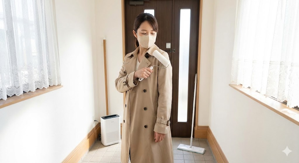 実は、室内の花粉の多くは、換気や洗濯物、そして「人」に付着して外から持ち込まれています。ここをブロックすることが最大の防御策となります。